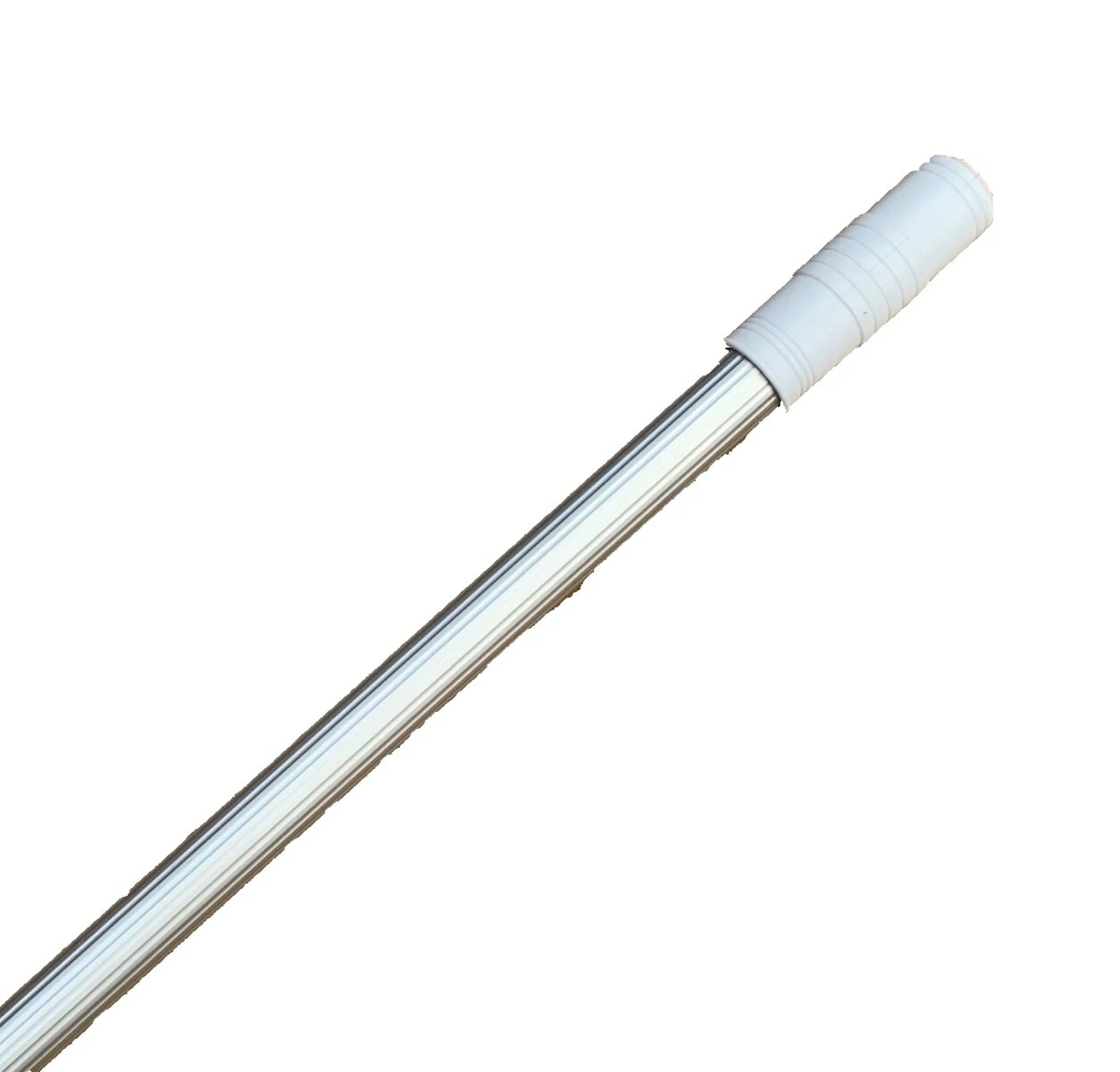 Swimming Pool Telescopic Pole – 3 sections, each 150cm. This telescopic pole connects to your vacuum heads, nets or brushes to assist with cleaning your swimming pool. The pole has 3 sections, each 150cm, making the pole a maximum length of 4.5 metres. Quality ribbed aluminium with a gripped handle (as shown in picture). The pole connects into any standard butterfly connection, as present on most brushes and nets etc. Please see our store for nets, brushes, vacuum heads and vacuum hose.